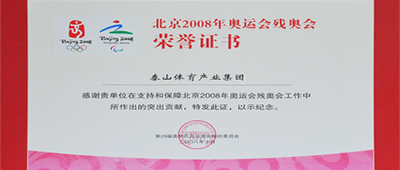 第二十九届奥林匹克运动会组织委员会为bellbet贝博BB集团颁发北京2008年奥运会残奥会荣誉证书